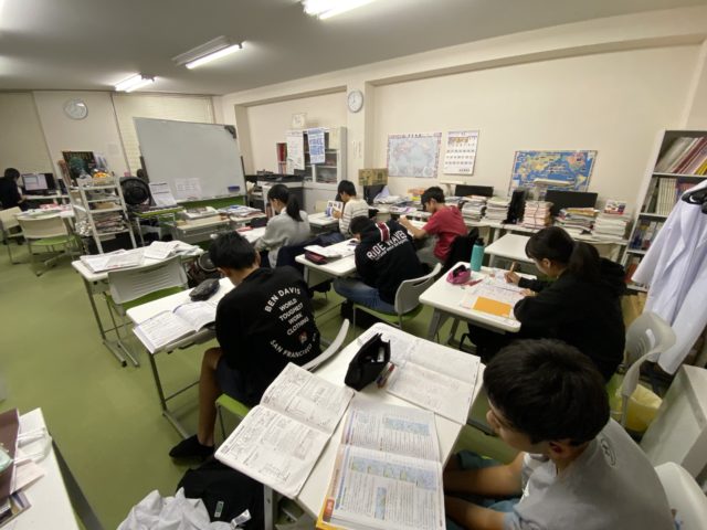 今日は、中2生たちが中心に、自習スペースで学校のワークを進めてくれていました。