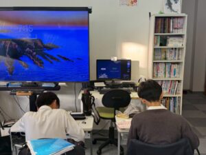 今日は、中2生たちが中心に、自習スペースで学校のワークを進めてくれていました。