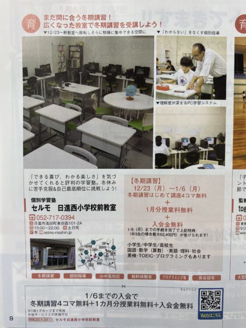 日進市で、主に日進西中学校の生徒を中心に、生徒みずから主体性を持って学び、自分のペースで勉強できる、ICTを活用した自立学習による学びの場を提供している、セルモ日進西小学校前教室 塾長の西尾です。