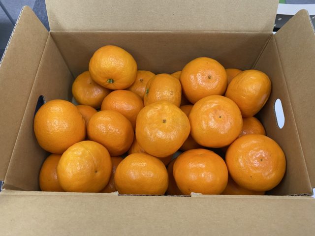 届いた品を開けたら、メジャーな伊予柑ではなく、「はれひめ」とい聞きなれない品種でした。