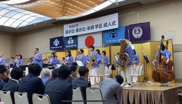 藤が丘にあるサンプラザシーズンズで毎年行われている藤が丘・豊が丘・本郷学区の成人式に、ありがたいことに名東ウインドオーケストラは毎年ゲストとして呼んでいただいています。