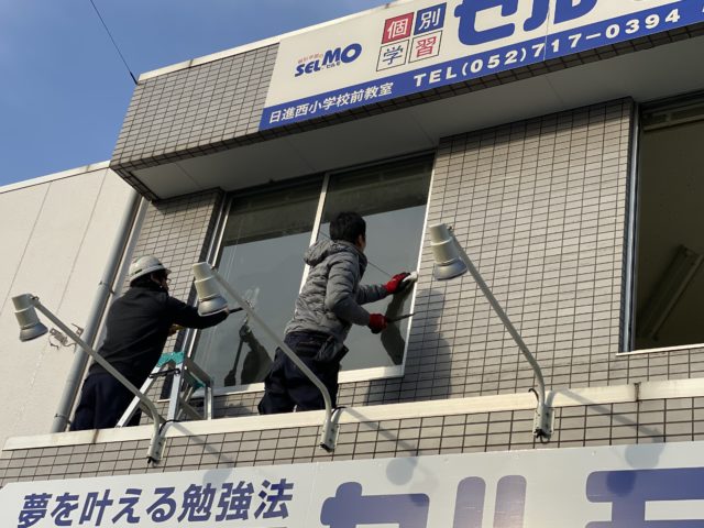 今日は、移転前の2Fの教室に残っていたカッティングシートを剥がしてもらいました。