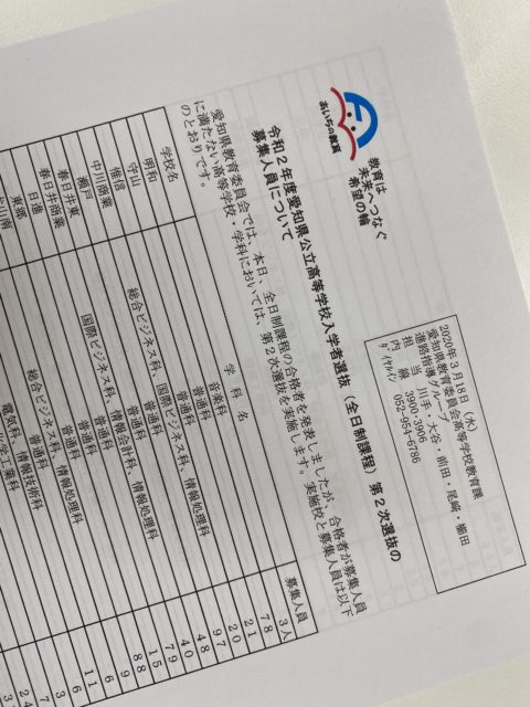 先週水曜日、愛知県の公立高校の合格発表が行われた当日、2次募集が行われる高校が発表されました。