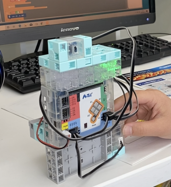 これまでは、モータを多数使った動きのあるロボットの制作が中心でしたが、次のステップでは、動きより、ゲーム機として遊べるロボットの制作になりました。