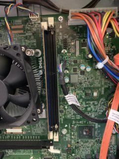 CPUを冷やすためのファンの横に、1枚だけメモリが刺さっていますね。