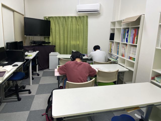 こちらは、高校生部屋で、黙々と問題集と格闘する高校生たち。