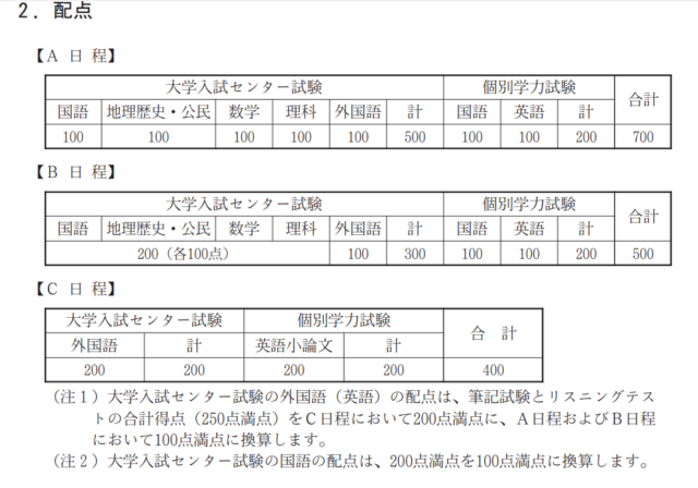こうした、入試の細かなことは、ネットのまとめサイトや、雑誌や本の情報なども必ずしも正確じゃなかったりするので、各大学の入試要項をしっかり読むようにしましょう。