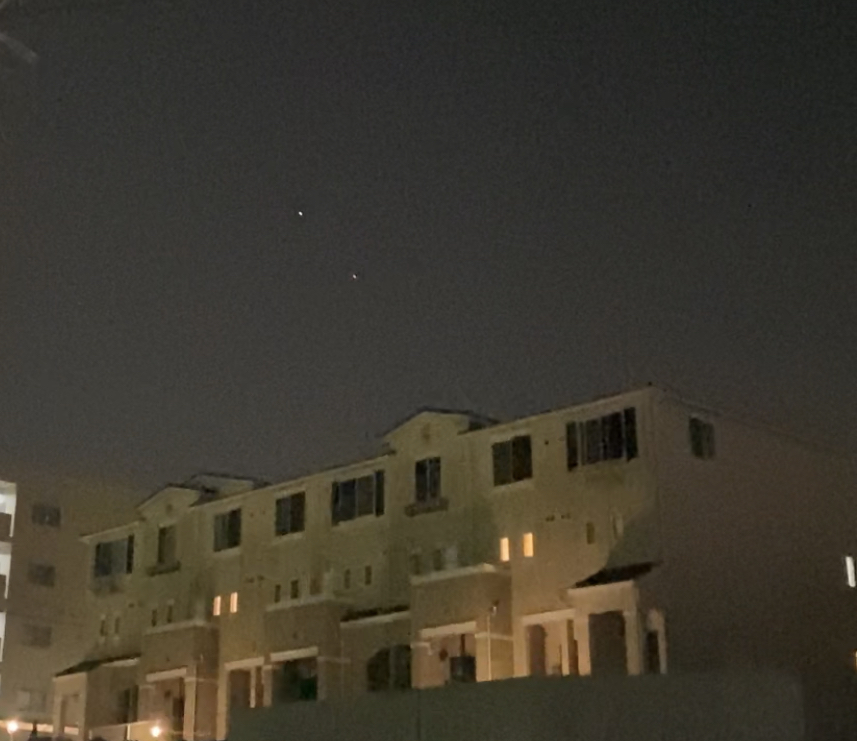 慌てて、携帯を構えて、写真を取って見ましたが、何とか、木星のすぐ右下にISSが一緒に写っているのが分かるかと思います。