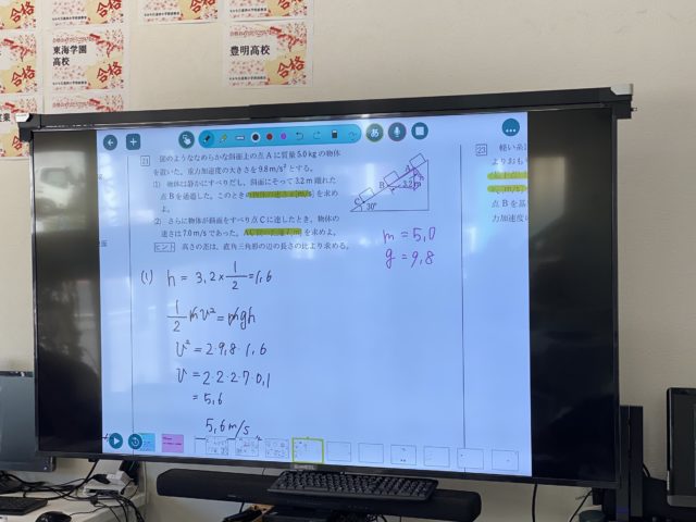 卒塾生から、物理のHELPが! iPadと電子黒板をつないで、課題の解説を行ってみました。