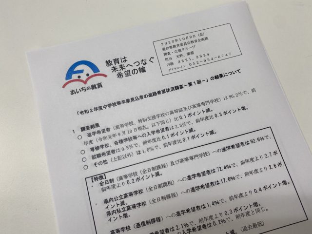 愛知県より、第1回目の進路希望調査結果が発表されました! そこから見えた驚くべき数字とは!?