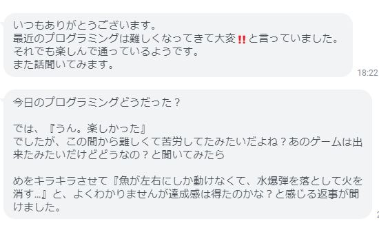 目をキラキラさせながら説明してくれました!とお母さんからのLINEが!