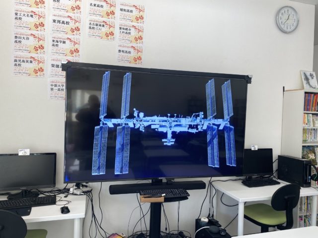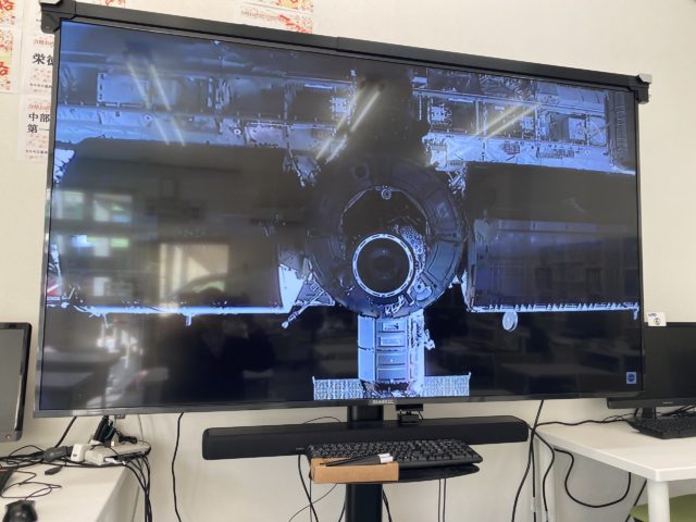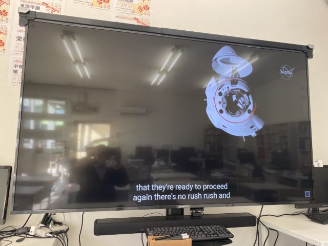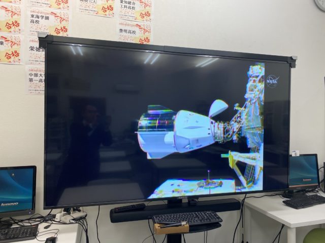 このロケットが、打ち上げから27時間後の今日のお昼に、上空400Kmを周回しているISS(国際宇宙ステーション)にドッキングするというイベントがあるので、教室の大型電子黒板で、LIVEで見守ることにしました。