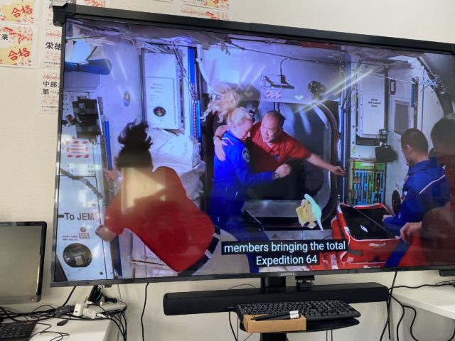 夜に、生徒たちに、ちょっとの間勉強の手を止めてもらって、ダイジェストで、打ち上げから、ドッキングまでを見てもらいました。
