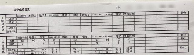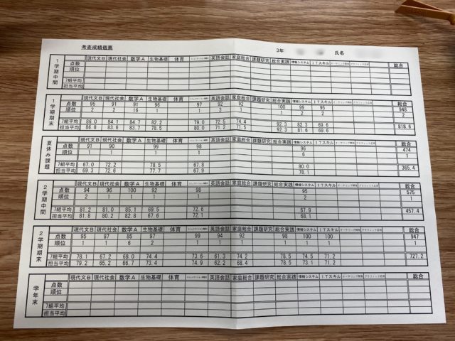 1学期期末は、ギリギリ2位で残念な思いをしたのですが、それ以降、課題テスト、2学期中間、そして今回の期末テストと3回連続で1位です!