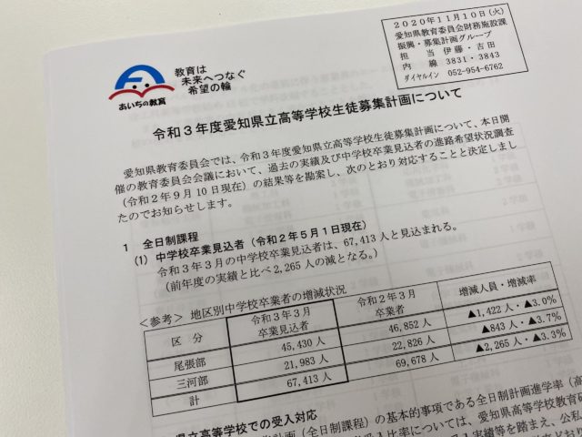 令和3年度愛知県公立高校入試の定員が発表されました! 33クラス、1320人の大幅減で、倍率への影響は?