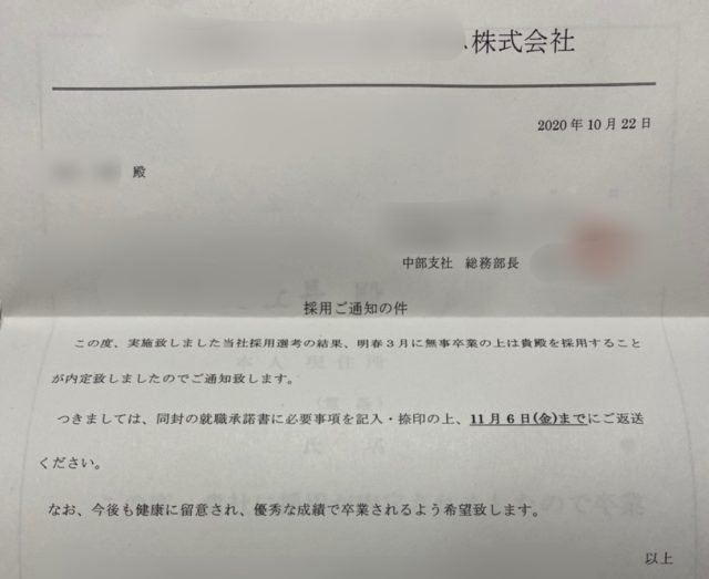 高校入学からの目標にさらに一歩近づきました! 一部上場企業企業から内定Getです!