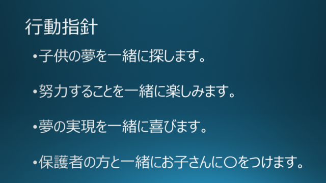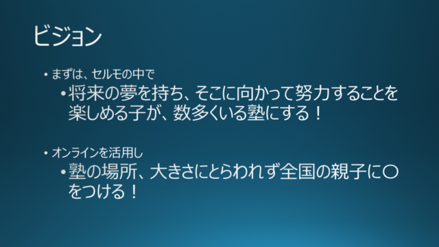 そして、自分のやりたいことを続けることで、ビジョンに掲げた、「理想の教室」を作ることができ、それを広げることこそが自分の思い(理念)なんだと改めて思いました。
