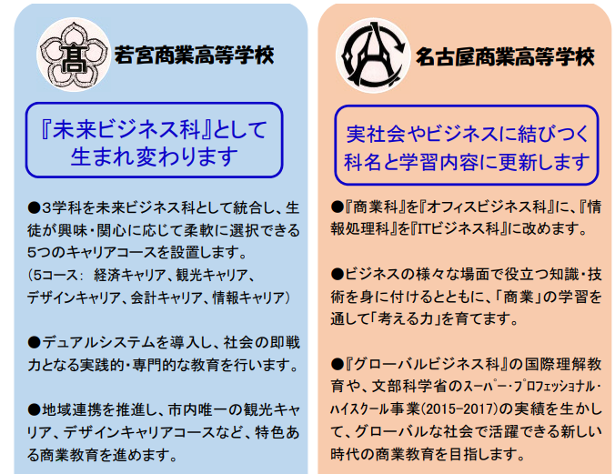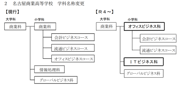 そしてこちらが、名古屋商業の学科名称変更の内容です。