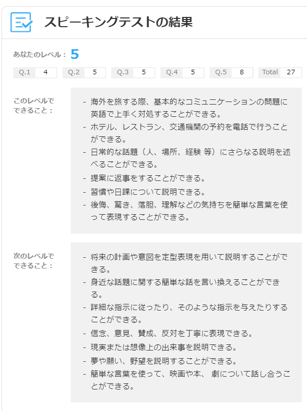 レベルは、2~6の中のレベル5という判定でした。