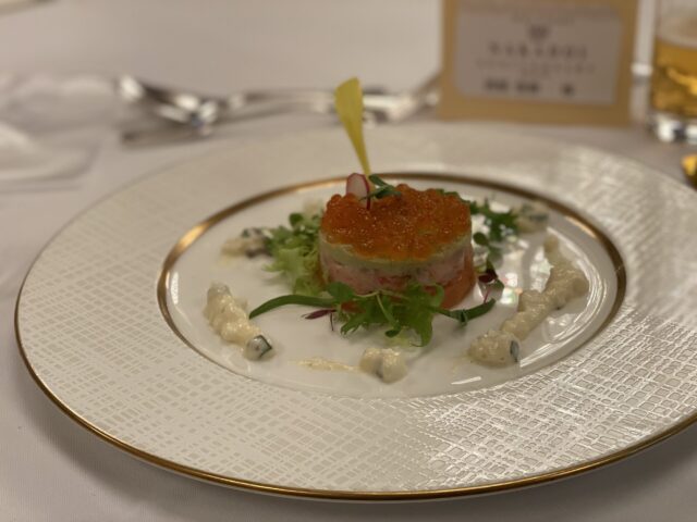 ズワイ蟹サーモン・カジキ、アボカドのミルフィーユ、レムラード香味