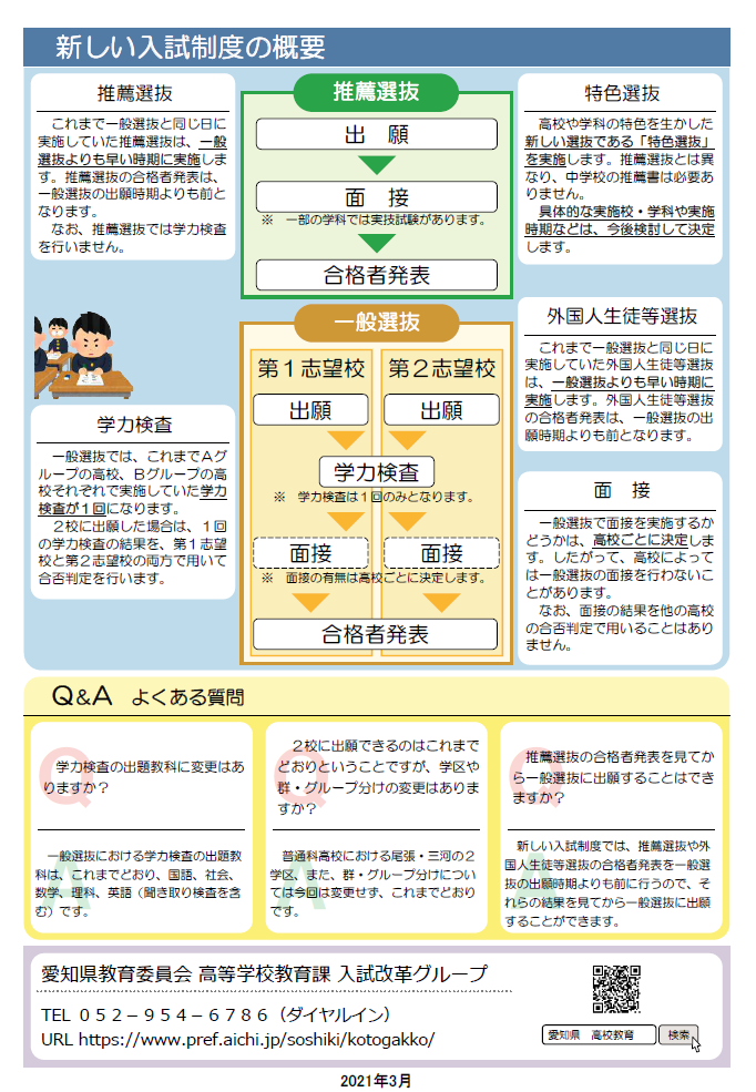 愛知県の入試方法の変更内容がまとまっているリーフレットが公開されました