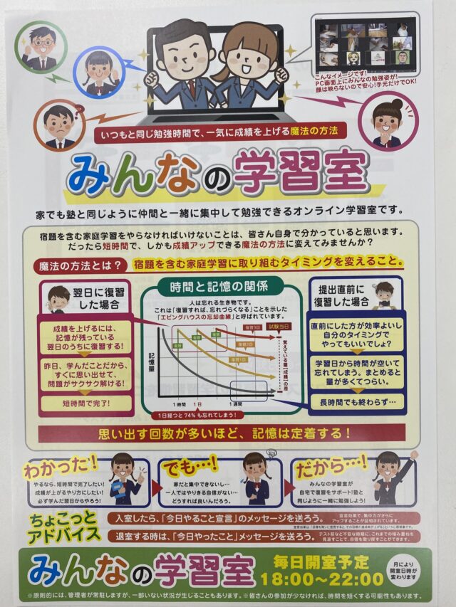 オンライン自習室「みんがく」で当塾の生徒が頑張ってくれています!