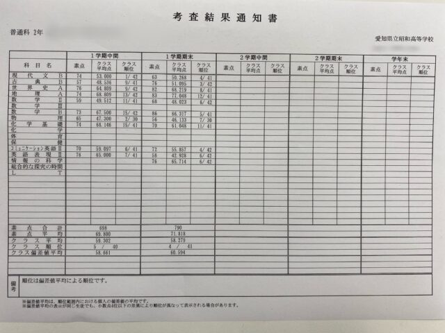 高校生が、期末テストの個票を見せてくれました!