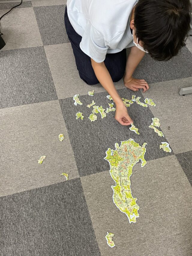 ちょうど、夏期講習に来ていた中2生の日本の地理が少し曖昧だったので、今のうちに復習をしておこうと、地図パズルを出して遊んでもらいました。