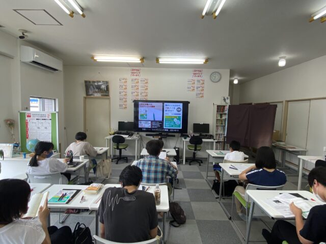 昨年は、入試対策講座の初日に、中3生のみに行いましたが、今年は、時期を早めまた、夏期講習中ということで、全学年の生徒に案内をさせていただいたところ、多くの生徒から申し込みを頂いたので、今日、明日の2日間に分けて開催することになりました。