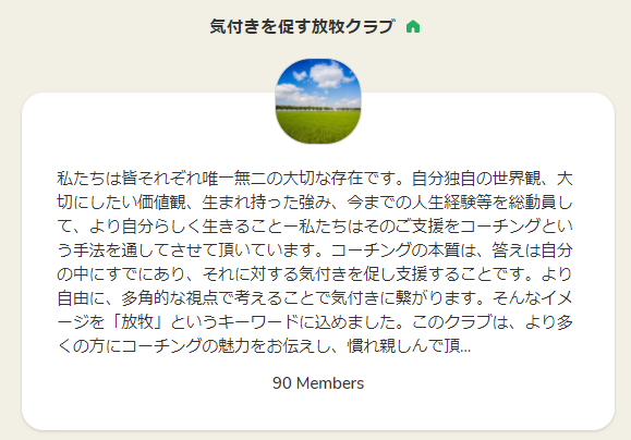 自分の誕生日である10月1日に、コーチングをもっと多くの方々に知ってもらいたいとの思いで、麻有子さんと私の2人のコーチでクラブを設立しました。