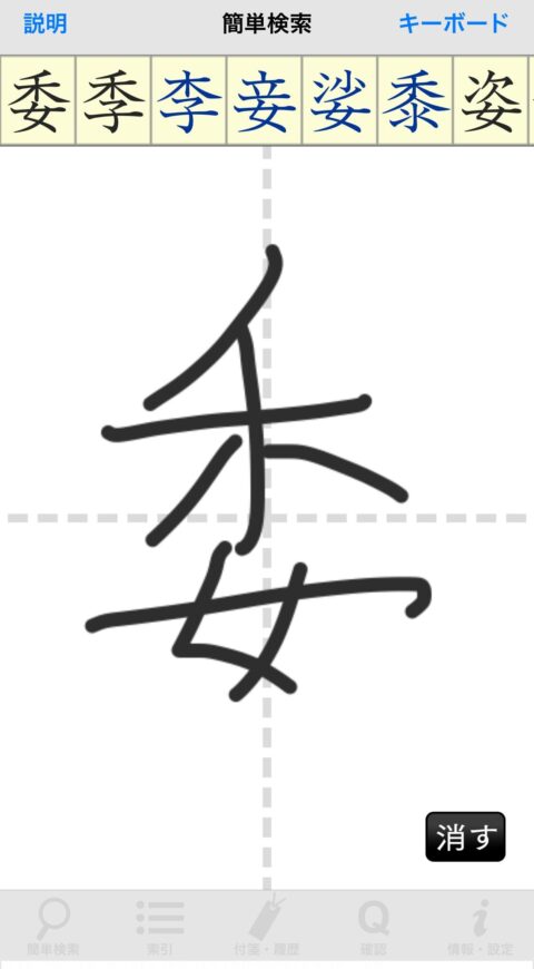 このアプリ、手書きで漢字を引けるので、とってもスピーディに漢字が調べられます。