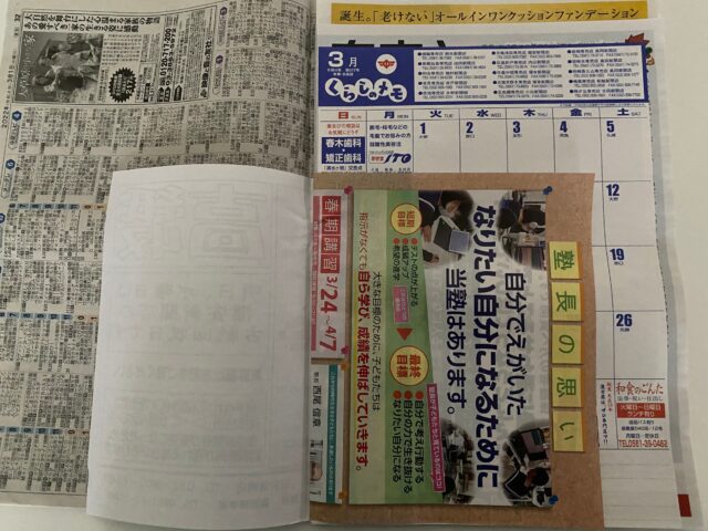 毎回、新聞販売店様のご厚意で、目立つ上の方に折り込んでもらえています。
