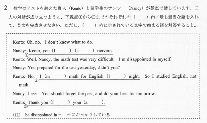 今回も、PCについての質問が終わった後、逆に、こちらから、先日終わった愛知県の公立高校入試の英語の問題を見てもらいました。