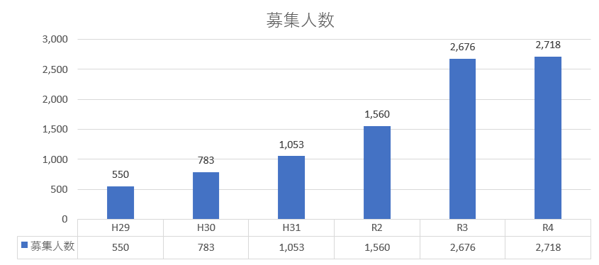 2次募集人数については、昨年一気に1.7倍増えましたが、今年は、ほぼ横ばいとなりました。