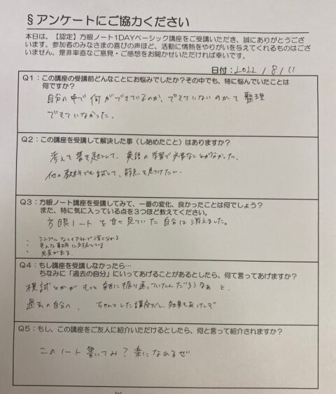 これからの時代に必須な「考える力」が身につく方眼ノート講座だということがよくわかるアンケート結果だったと思います。