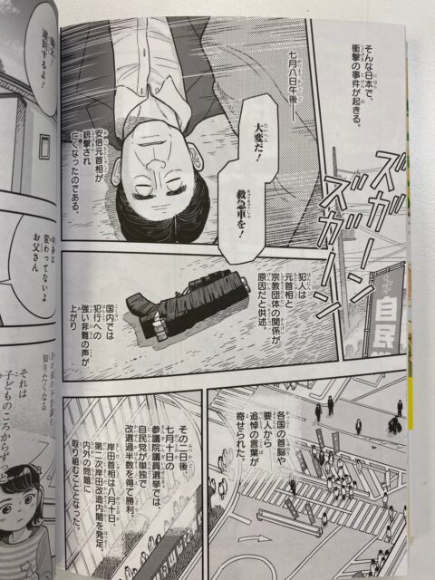 今年の夏の、安倍元首相の銃撃事件が描かれています。