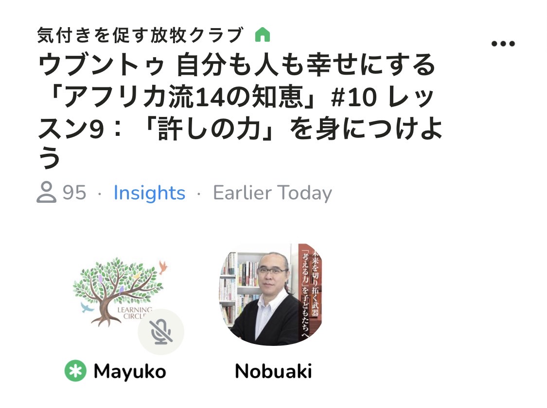 今朝はClubhouseのコーチング部屋でした。ウブントゥ「アフリカ流14の知恵」からLesson9です。