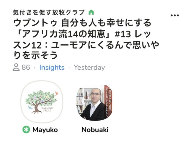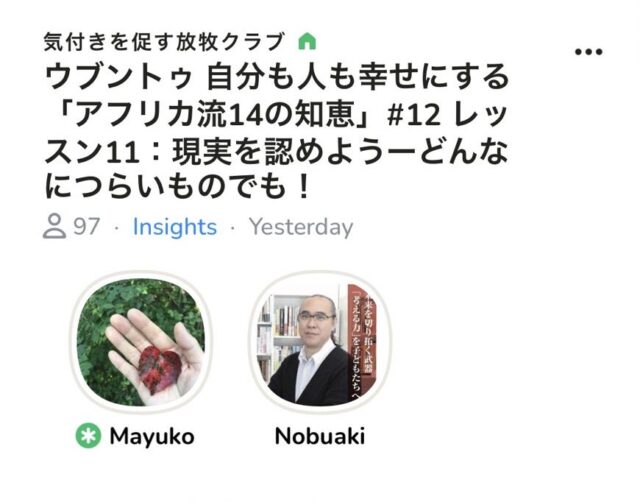 昨日はClubhouseのコーチング部屋でした。ウブントゥ「アフリカ流14の知恵」からLesson12です。