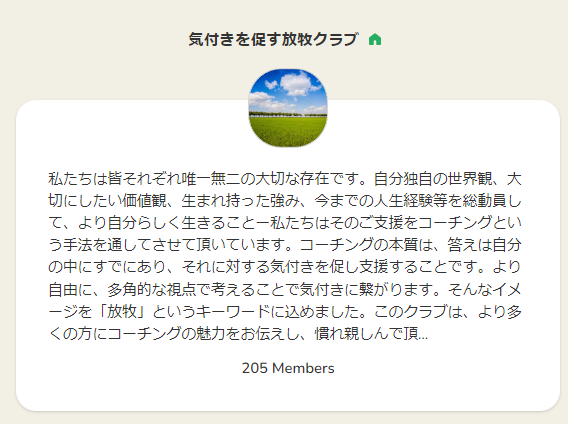 自分の誕生日である10月1日に、コーチングをもっと多くの方々に知ってもらいたいとの思いで、麻有子さんと私の2人のコーチでクラブを設立しました。