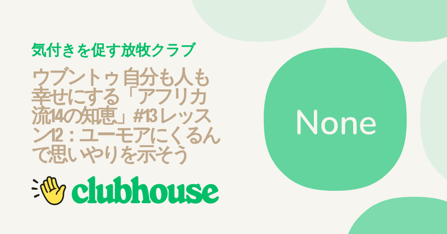 今朝はClubhouseのコーチング部屋でした。ウブントゥ「アフリカ流14の知恵」最終回 総集編です!