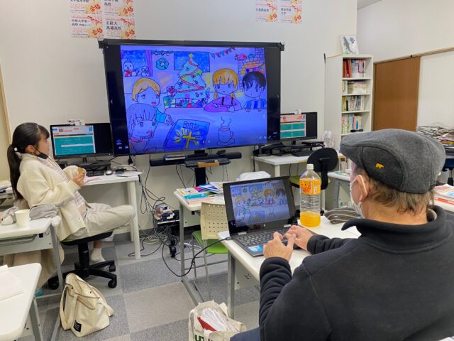 お子さんたちで、絵を書いて、声を入れて、クリスマスとはどんな日なのかを紹介する電子紙芝居(動画)を作ったそうです。