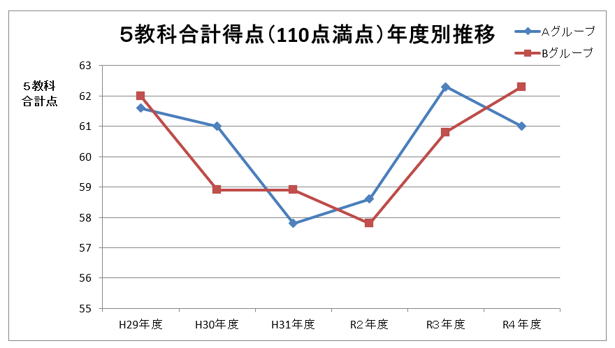 コロナ禍で年度初めが休校からスタートした、R3年度、そして引き続きコロナの影響が大きかったR4年度は、それまで一貫して難化に向かっていた入試難易度を一気に逆方向に流れを変えました。