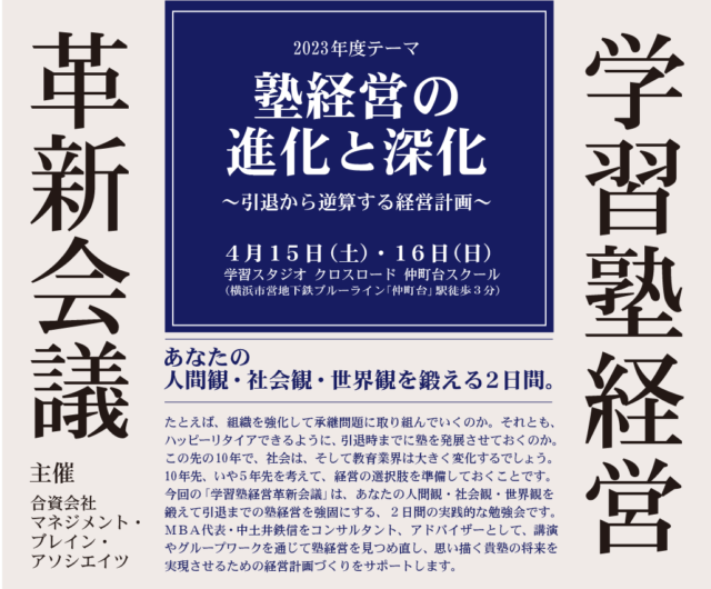 コロナの激動の3年を生き抜いた学習塾が、これからも保護者様、生徒に選ばれ続ける存在になるには、塾長が学び続ける必要がありますね。