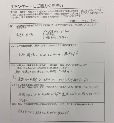 前回の受講から約1年、To Doリストや、目標設定などで活用はしてくれていたものの、中3になり、考える宿題も増え、進路を決めたり、受験勉強に向けどう学ぶかを考えることが増えてきたタイミングでの再受講はとってもいい機会になったようです。