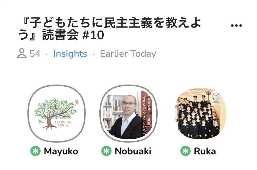 次回以降もClubhouseの中で、大人同士での「対話の訓練」を行い、民主主義とは何かを一緒に考えていきたいと思っています。