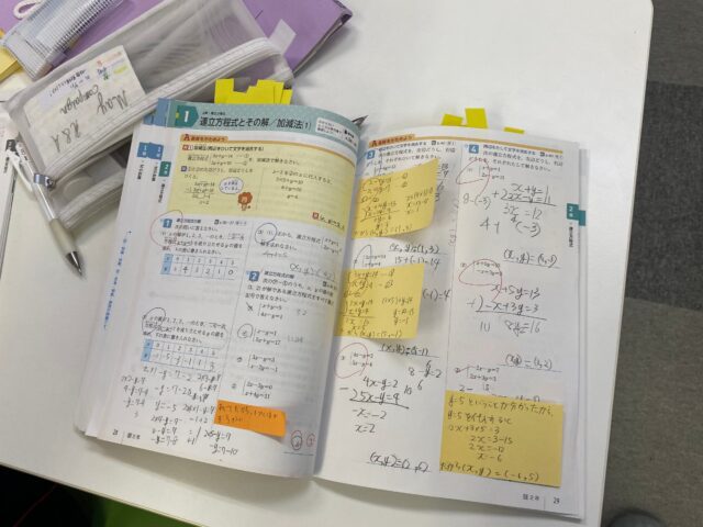 自習スペースでは、基本、生徒たちが自学自習しているので、あまり声はかけないのですが、今日、巡回しているなかで、うまくワークを使ってくれていたので、見せてもらいました。
