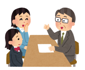 以前は、中3生以外は保護者との二者面談でしたが、今は全学年で三者面談が実施されています。