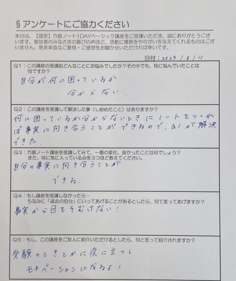 素敵なアンケートの回答を頂きました。(8/11分)