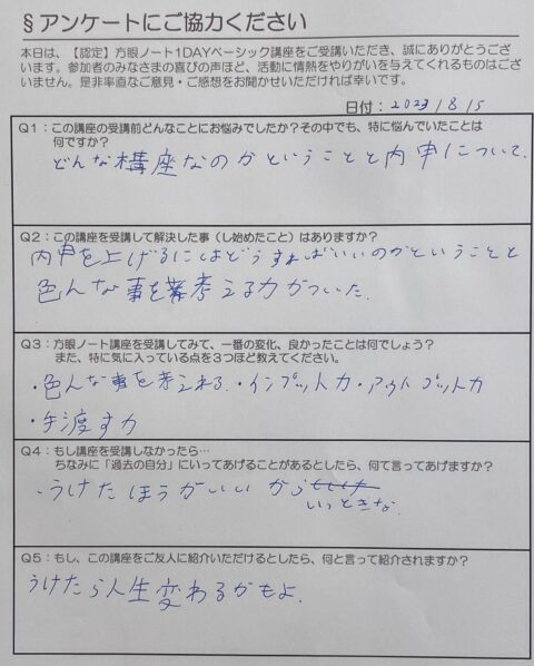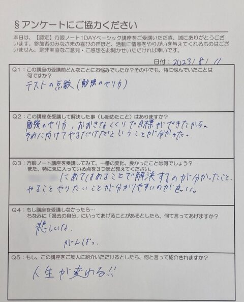 Q3.方眼ノート講座を受講してみて一番の変化、良かったことは何でしょう?