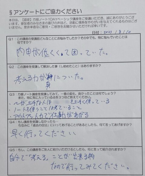 「方眼ノート1Dayベーシック講座」で「考え方」という大きな武器を手渡せました!